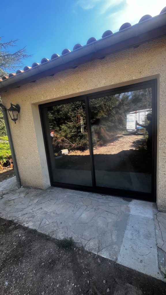 La porte-fenêtre coulissante s’intègre parfaitement dans l’existant et apporte une réelle plus-value au bien.